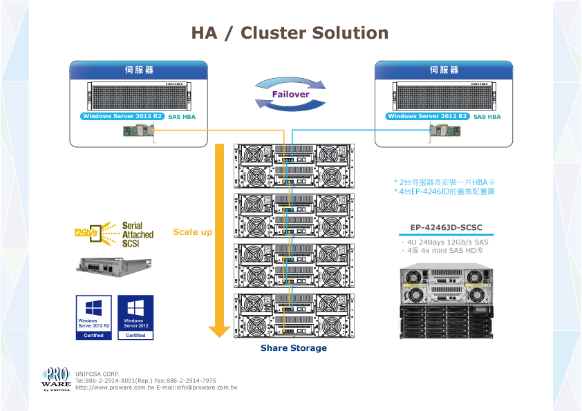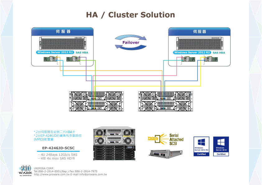 | JBOD控制器 | 單控制器(EP-4246J-SCSC) / 雙控制器(EP-4246JD-SCSC) |